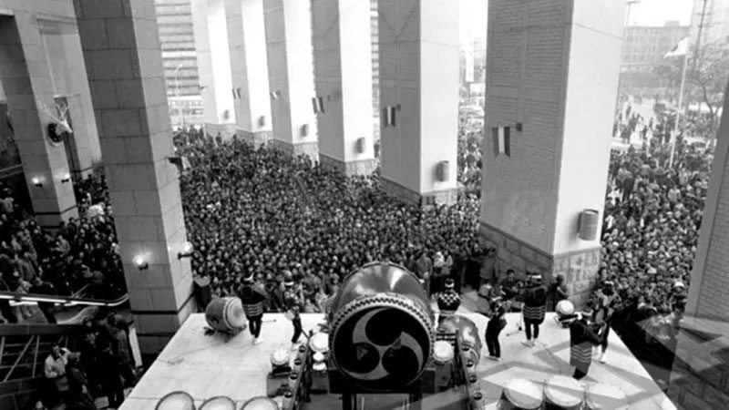 1/3 1995年12月20日,上海第一八佰伴新世纪商厦在浦东新区的开业表演,吸引了众多市民。资料图