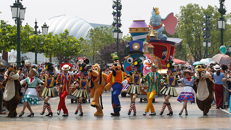 4/4 2016年6月17日,上海迪士尼乐园,迪士尼经典卡通形象与游客互动。韦毅 澎湃资料图