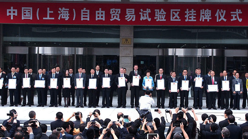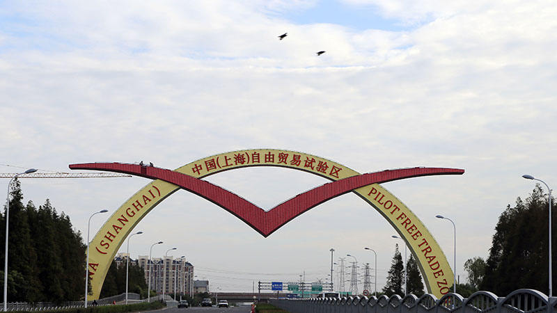 1/3 中国(上海)自由贸易试验区的大型门牌。赵昀 澎湃资料图