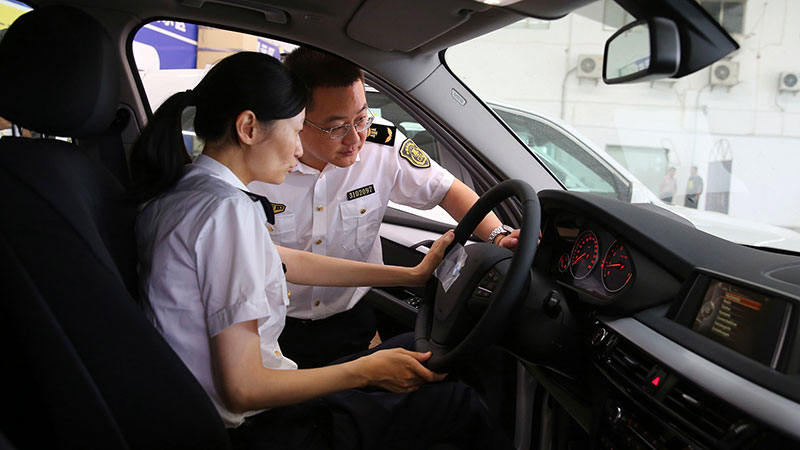 1/4 工作人员对上海自贸区首批平行进口汽车实施检验监管。上海检验检疫局 供图
