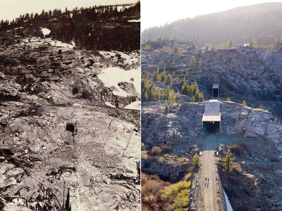 10英里铺轨纪录终点标志的老照片和今天的照片