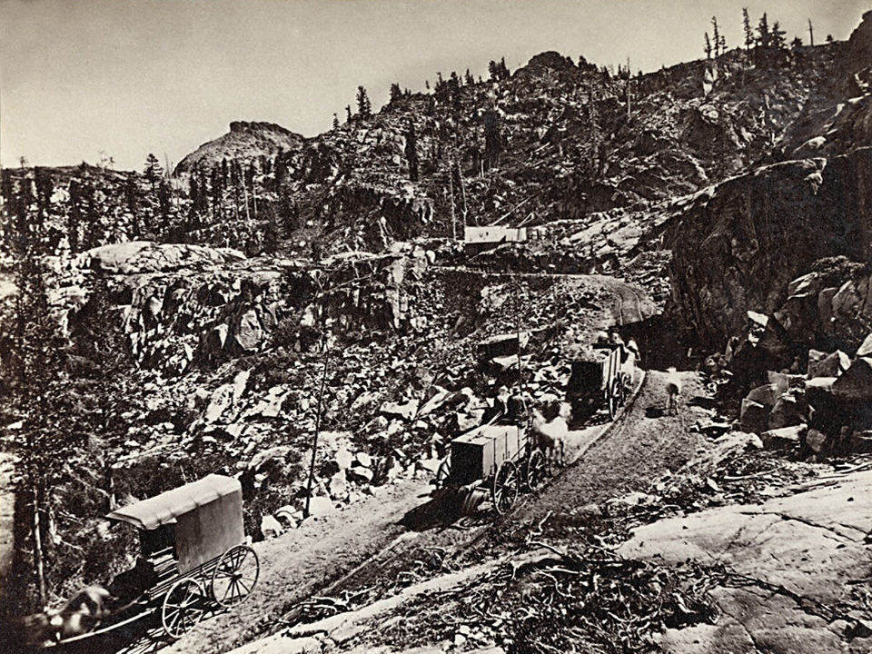 1866年,华工们开始挑战工程中的又一个拦路虎,位于美国加州西拉内华达山脉西侧,梗阻铁路长达百里的悬崖峭壁。