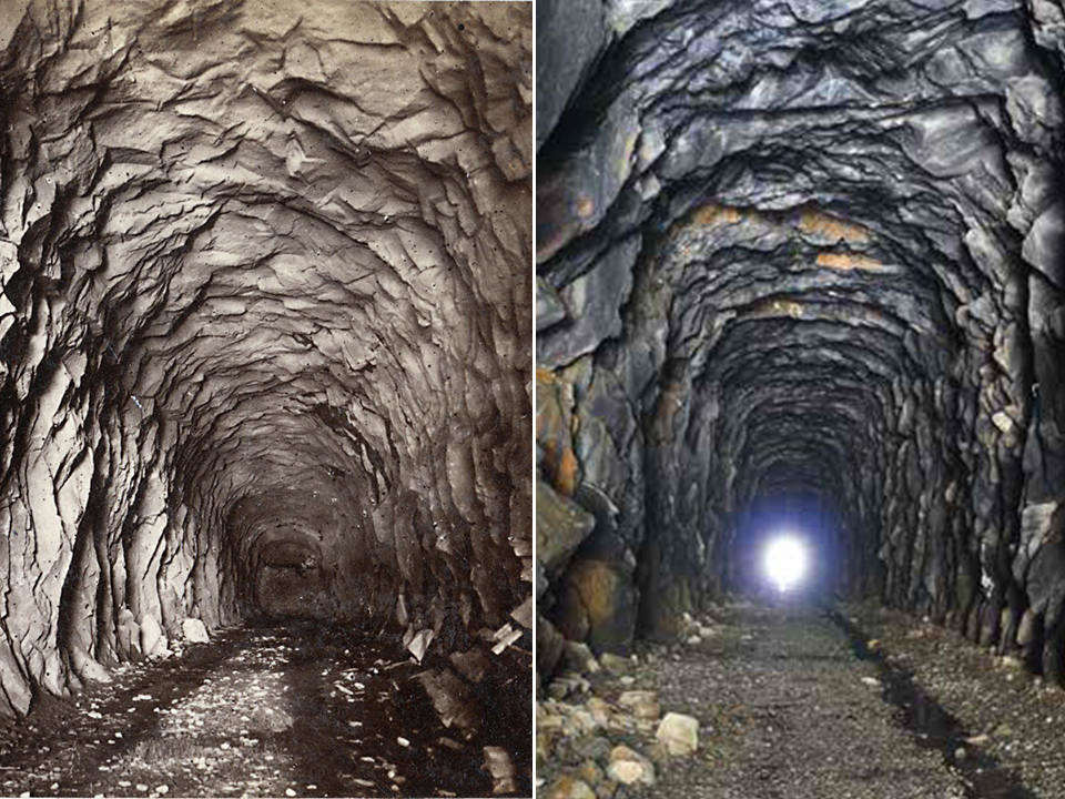 当年布鲁默深槽火车通过时的景象和今天的样子。